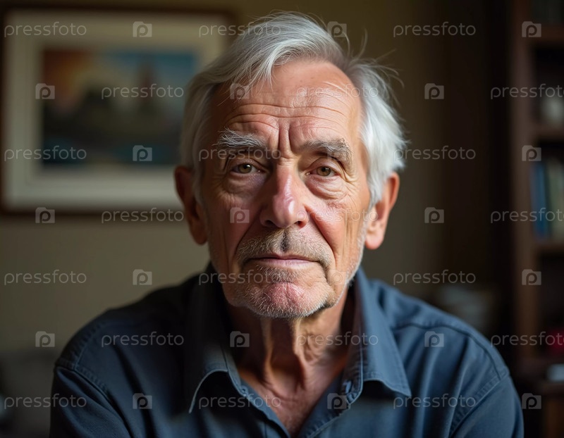 Пожилой мужчина, житель США, с белыми волосами радостно демонстрирует свое дружелюбное поведение в непринужденной одежде. Теплая внутренняя среда усиливает его приглашающую улыбку. Генеративный ИИ