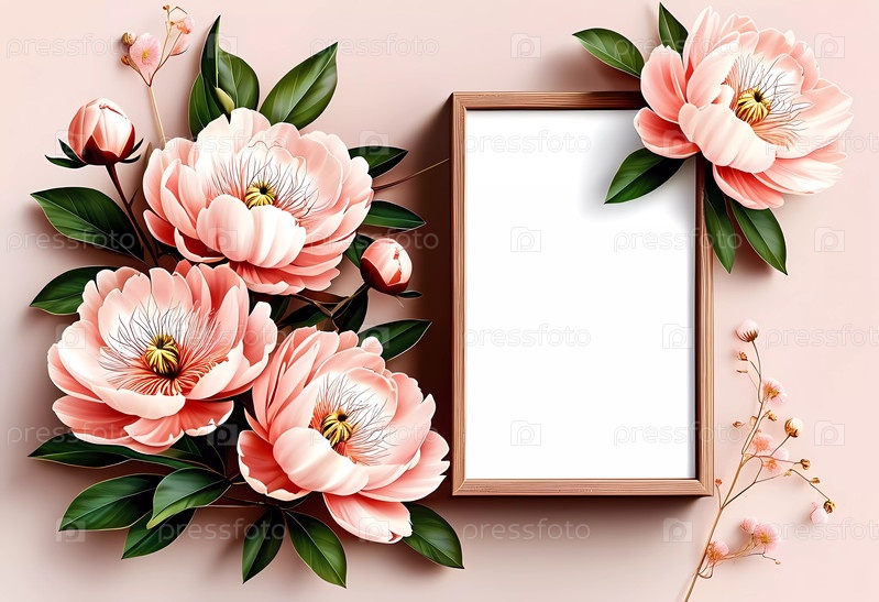 Розовые пионы цветут изящно, создавая свободное пространство, идеально подходящее для личных замечаний или художественных творений