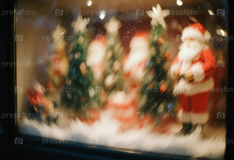 Цветные фигуры Санта-Клауса стоят среди рождественских деревьев в уютном дисплее.Сцена наполнена праздничным духом и прикосновением зимы, создавая праздничную атмосферу.Эффект смещения уклона.Генеративный AI