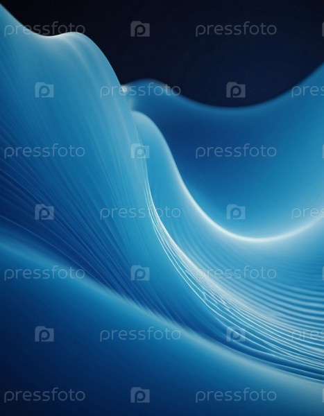 Текущие 3D-синие волны создают абстрактное представление о динамике жидкостей, вызывая спокойствие и глубину в минималистичном дизайне, который повышает цифровое творчество