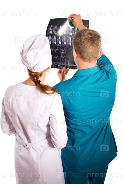 Врач и медсестра смотрят на снимок