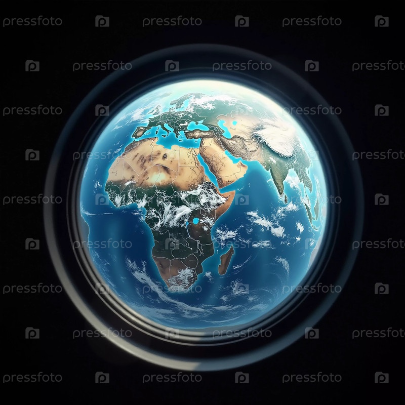 Наблюдение за планетой Земля через люк открывает захватывающий вид на покрытые снегом горы, спокойные океаны и рассеянные облака, подчеркивая красоту планеты сверху