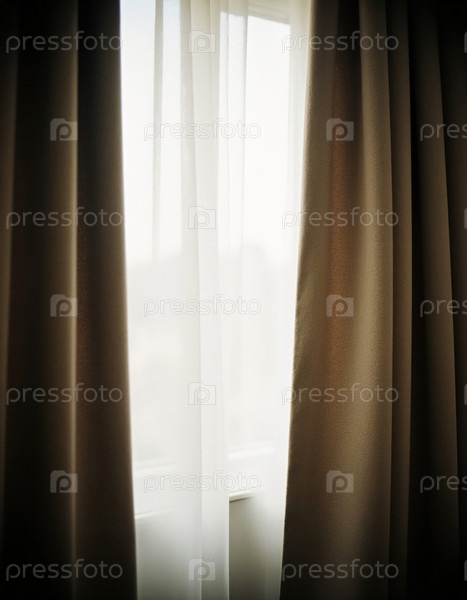 Коричневые шторы аккуратно застегиваются вокруг окна, позволяя мягкому свету проникать в тихую комнату