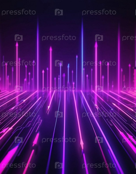 Высокие, светящиеся структуры заполняют горизонт, их изящные линии усиливаются яркими розовыми и синими огнями. Яркие лучи простираются от города, создавая энергичную атмосферу. генеративный ИИ