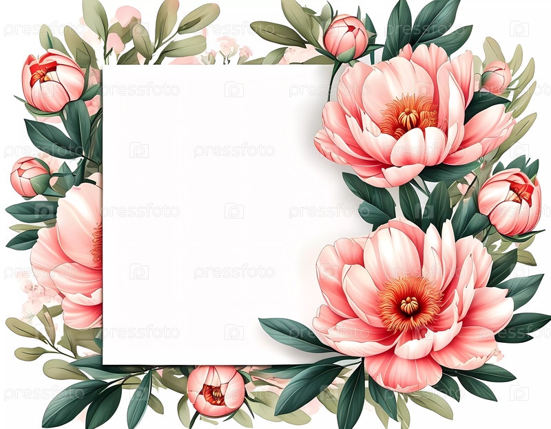 Прекрасные розовые пионы изящно окружают просторную пустую зону, приглашая к творчеству и личным прикосновениям.Идеально подходит для отправки теплых пожеланий или захвата моментов любви и радости