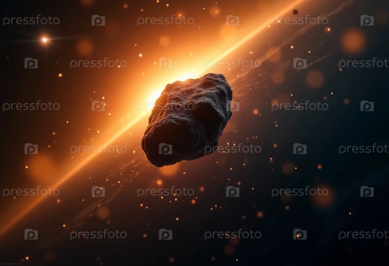 Одинокий астероид дрейфует по просторам космоса, освещенный теплым светом близлежащей звезды.Космическая пыль танцует вокруг небесных чудес на расстоянии