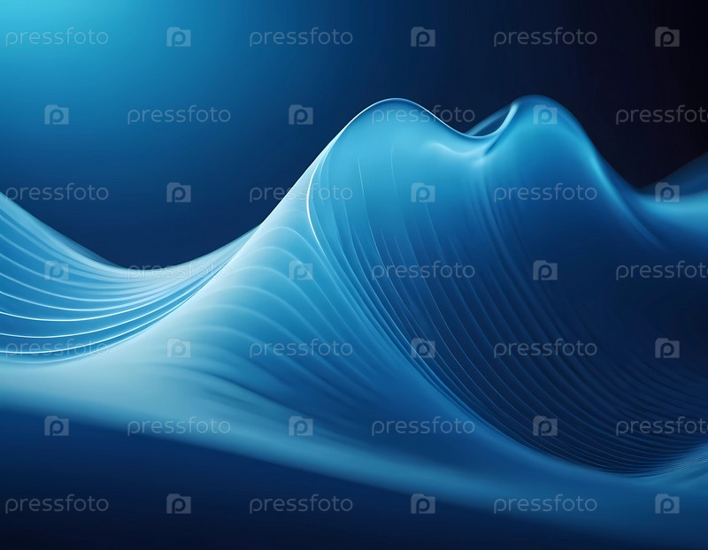 Текущие 3D-синие волны создают абстрактное представление о динамике жидкостей, вызывая спокойствие и глубину в минималистичном дизайне, который повышает цифровое творчество
