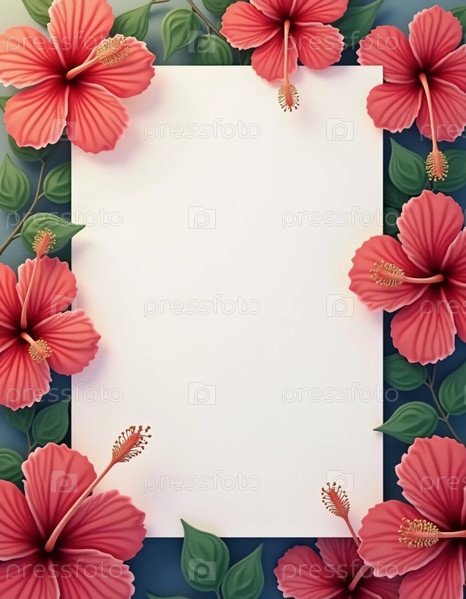Вибрирующие цветы гибискуса расцветают и мягкий полупрозрачный фон для текста, улучшая естественную красоту. Мягкий свет добавляет спокойную атмосферу в тропическую обстановку. Фон для упаковки чая. AI