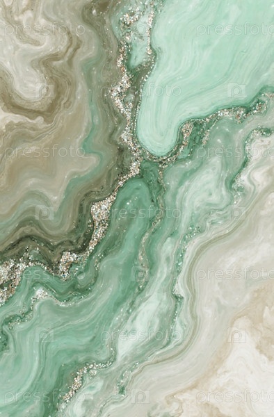 Вихри богатого зеленого и мягкого бежевого цвета плавно сочетаются с оттенками золота, создавая захватывающую и элегантную композицию.Это произведение искусства излучает яркую энергию и спокойную красоту Generative AI