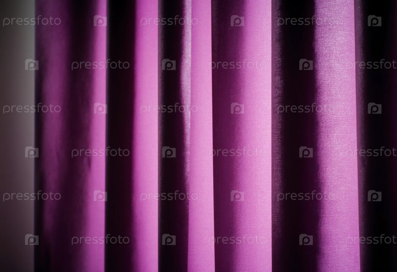 Мягкие фиолетовые лиловые шторы грациозно висят, фильтруя теплый дневный свет в комфортной гостиной, создавая спокойную и приглашающую атмосферу для отдыха