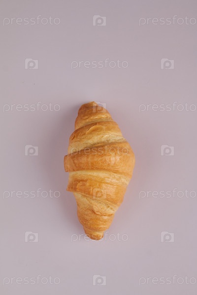 Свежий кроассан на светло-фиолетовом фоне