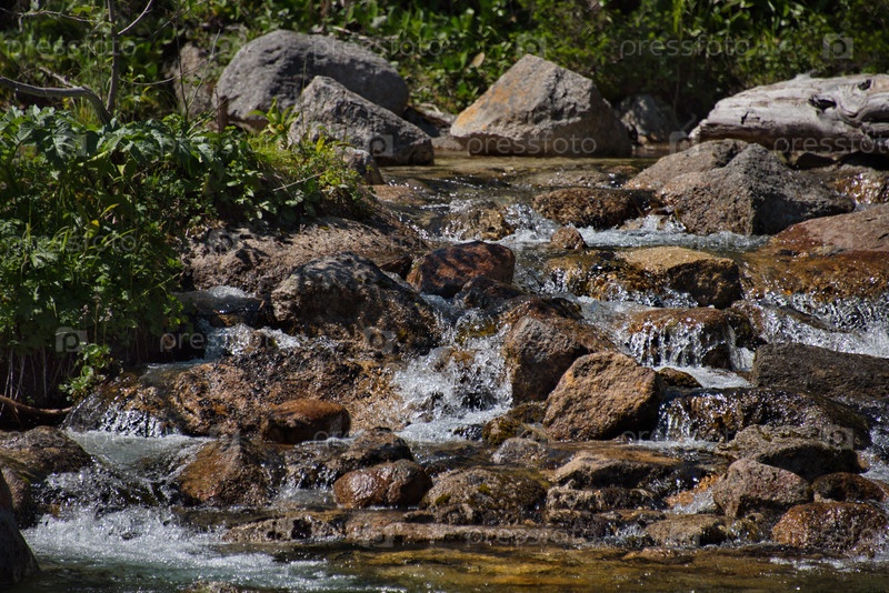 Россия. Юг Сибири. Западные Саяны. Многочисленные каскадные водопады реки Тайгиш в природном горном парке Ергаки