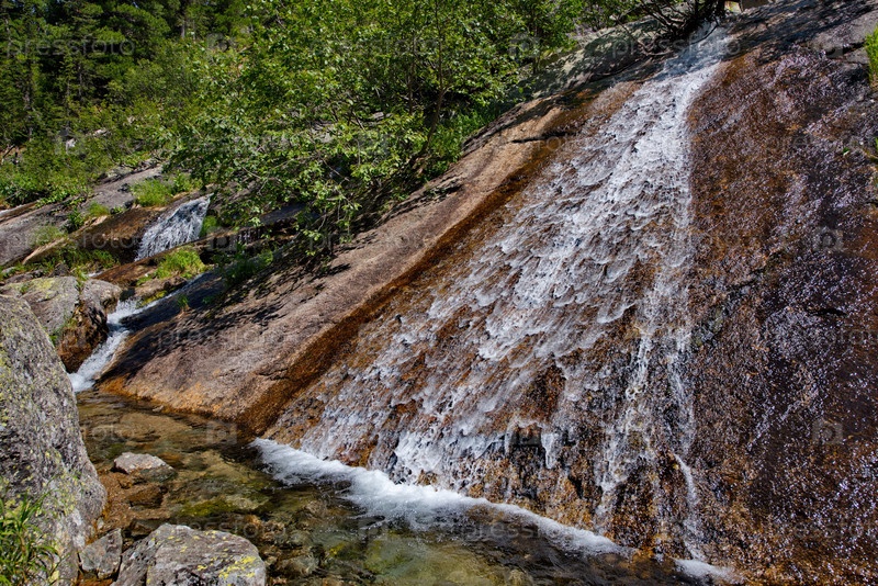 Россия. Юг Сибири. Западные Саяны. Многочисленные каскадные водопады реки Тайгиш в природном горном парке Ергаки