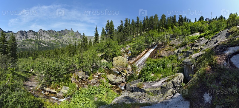 Россия. Юг Сибири. Западные Саяны. Многочисленные каскадные водопады реки Тайгиш в природном горном парке Ергаки