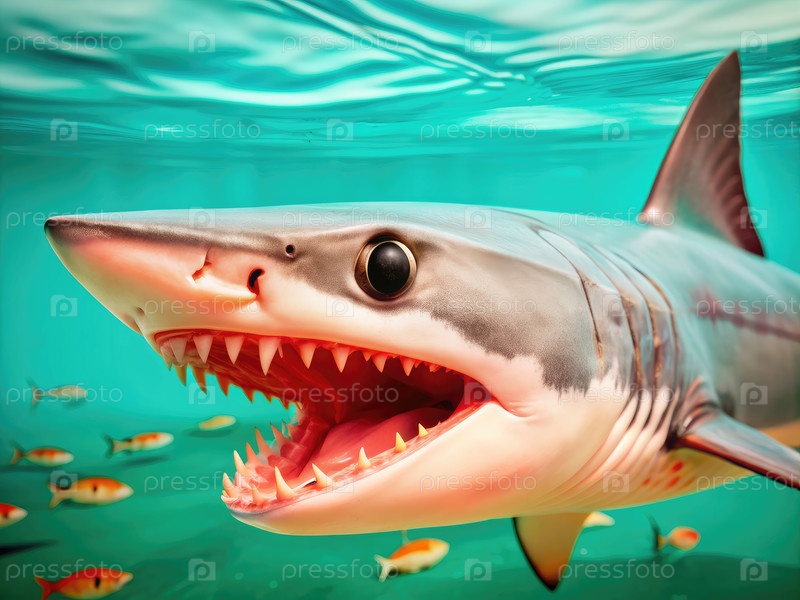 Длиннокрылая акула Мако плавает в чистой голубой воде