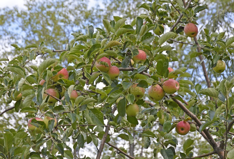 Небольшие яблоки на ветвях деревьев в саду. сбор декоративных яблок на деревьях в городском парке. время сбора урожая для здоровых и вкусных фруктов