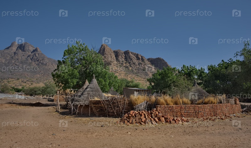 Монго, Чад, 27 февраля 2026 года. Вид на конусные хижины африканских деревень, построенных из обоженых глиняных кирпичей и крыш из тростника и веток деревьев