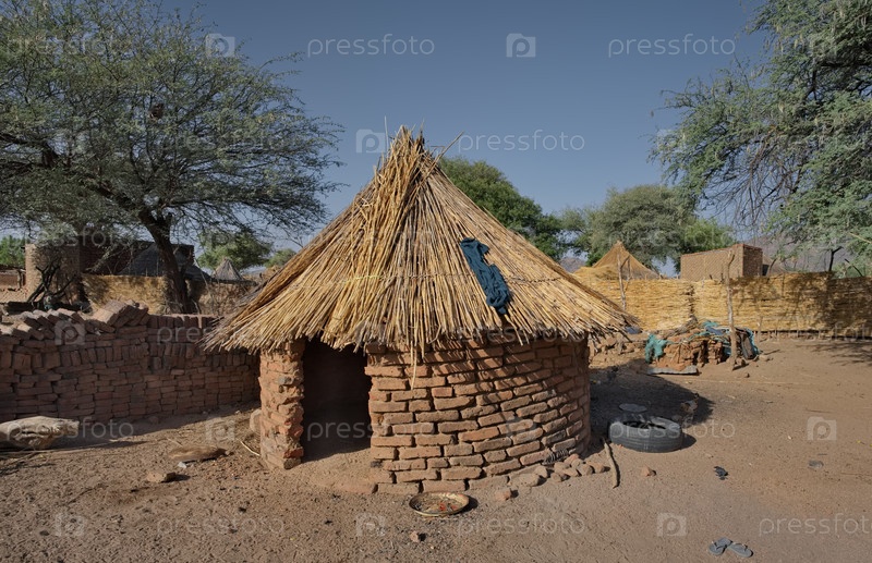 Монго, Чад, 27 февраля 2026 года. Вид на конусные хижины африканских деревень, построенных из обоженых глиняных кирпичей и крыш из тростника и веток деревьев