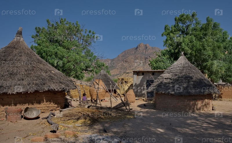 Монго, Чад, 27 февраля 2026 года. Вид на конусные хижины африканских деревень, построенных из обоженых глиняных кирпичей и крыш из тростника и веток деревьев