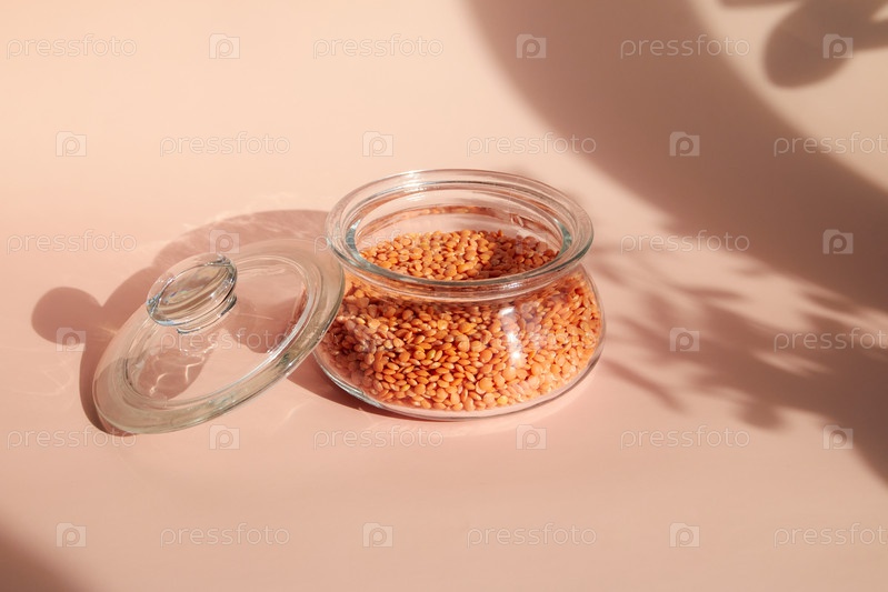 Красные чечевицы в стеклянной чашке