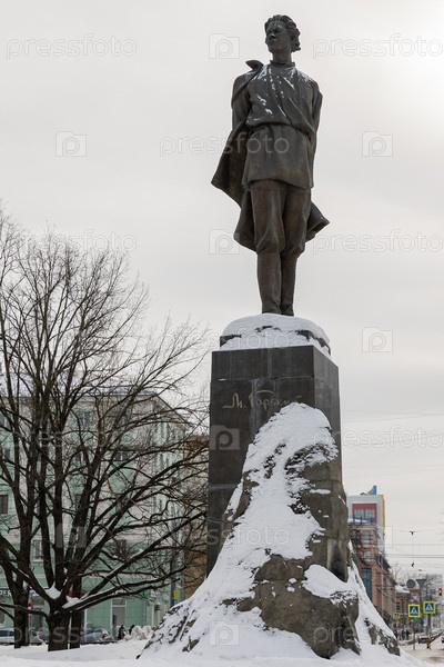 Россия. Нижний Новгород. Памятник Максиму Горькому на фоне городских зданий