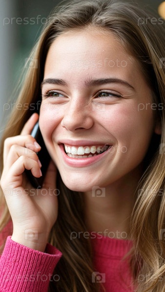 Девушка разговаривает по телефону и смеется. Красивая молодая женщина разговаривает по телефону. Девушка смеется разговаривая по телефону