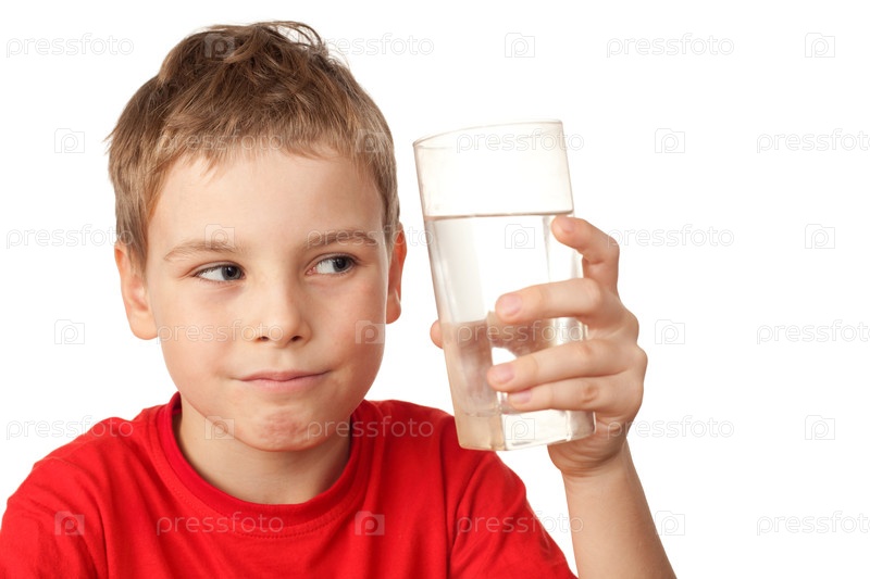 Молодой мальчик держит прозрачный стакан воды
