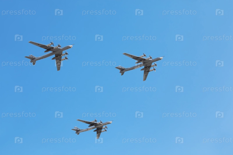 Три внушительных военных самолета поднимаются в идеальной синхронизации по безупречному лазурному небу -