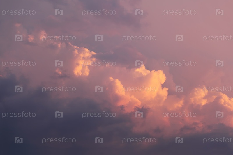 Мягкие розовые и золотые облака дрейфуют по темному небу