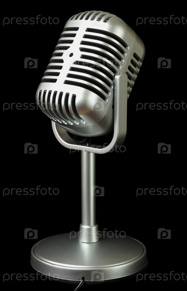 Винтажный серебряный микрофон на черном фоне