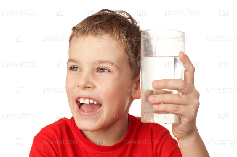 Молодой мальчик улыбается, держа в руках стакан воды