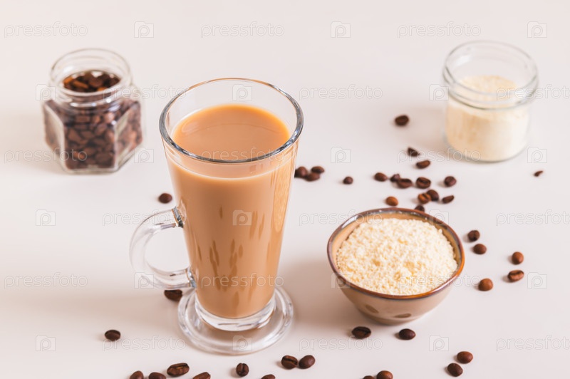 Протеиновый кофе для утреннего ритуала в стакане на столе