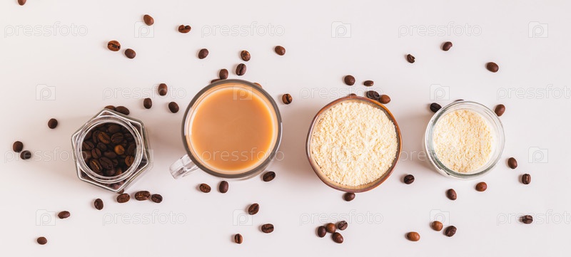 Протеиновый кофе профиль для утреннего ритуала в стакане на столе верхний вид веб-баннер