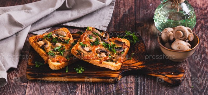 Вкусные выпеченные бутерброды с сыром, грибами и травами на веб-баннере