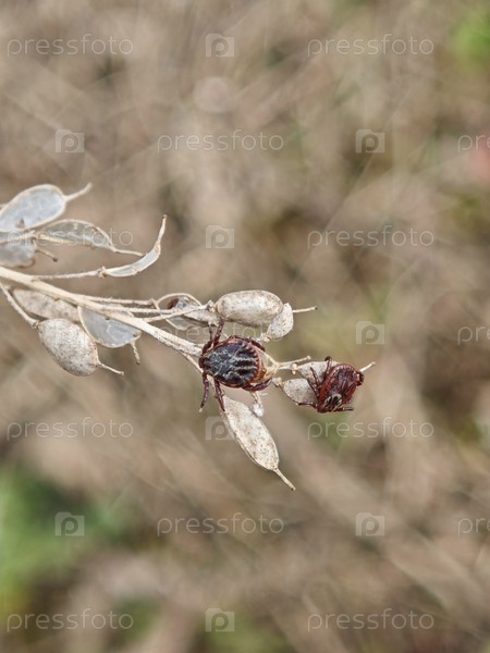 Близкий макрофотографический снимок двух клещей