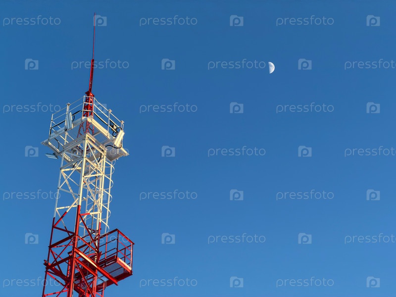 Производственная мачта на фоне луны