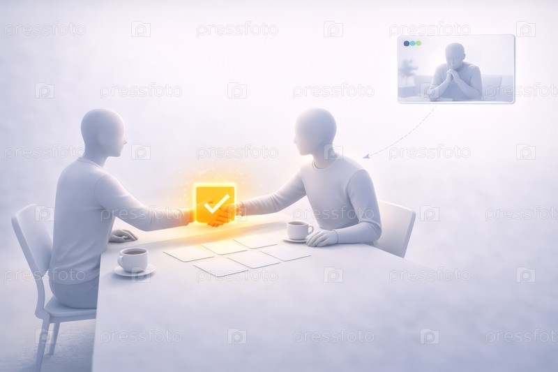 Рукопожатие по деловому соглашению с концепцией цифрового одобрения