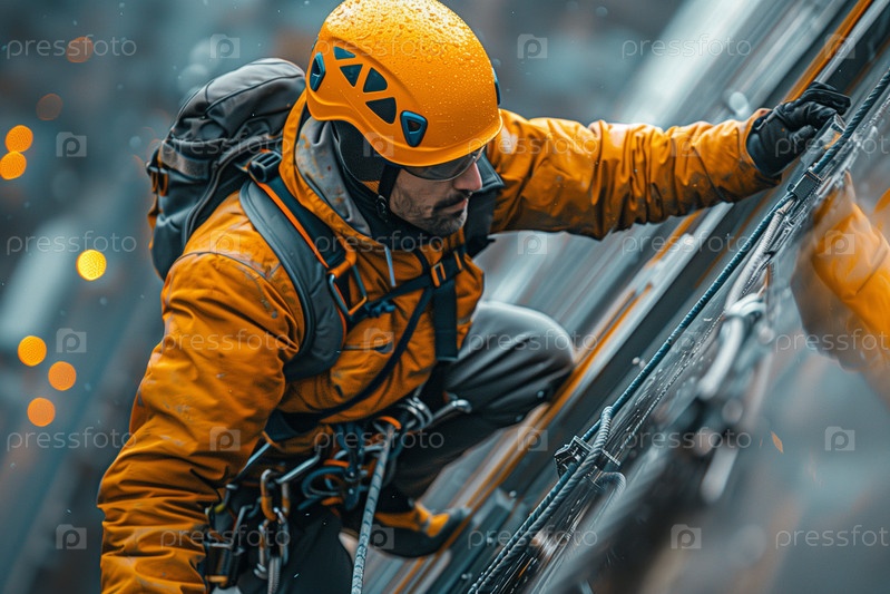 Рабочие-альпинисты на строительстве небоскреба