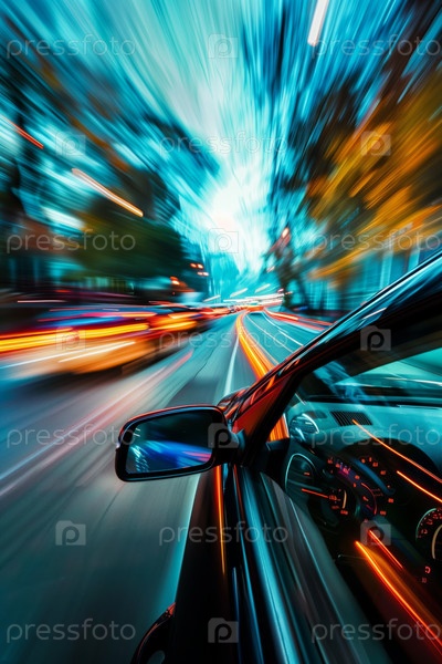 Автомобиль, движущийся на высокой скорости, с эффектом размытия движения