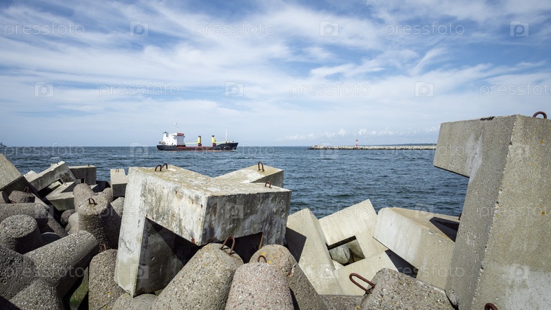 Вид на северный пирс с тетраподными волноломами в городе Балтийск