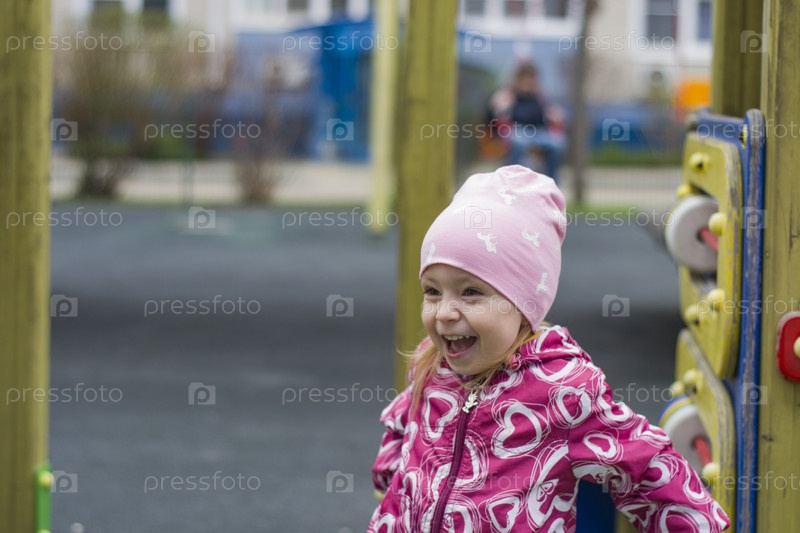 Маленькая девочка смеется на детской площадке