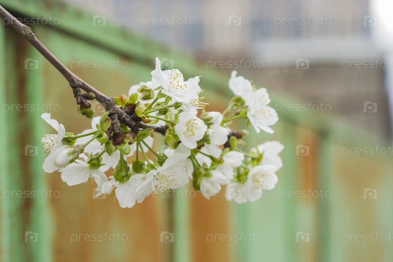 Цветение вишневых цветов весной, ближайшие белые цвета