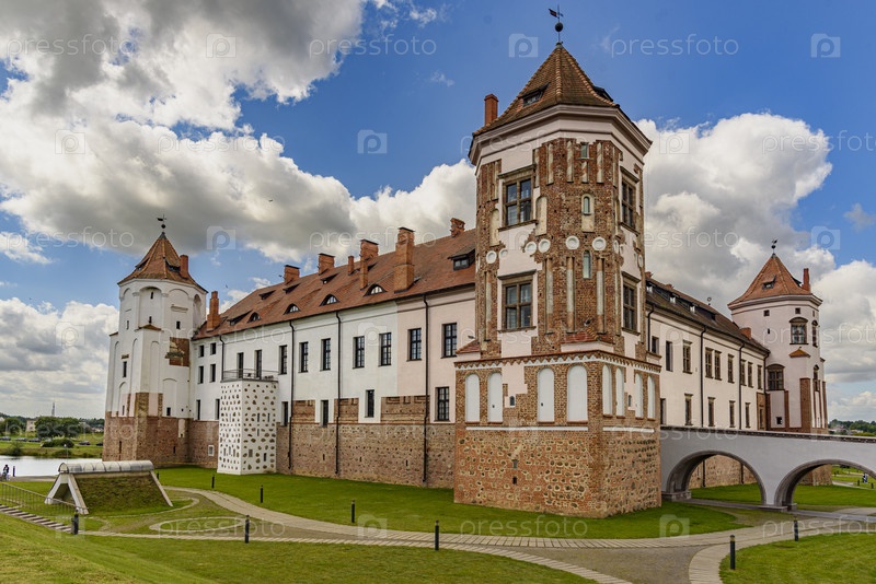 Мирский замок на фоне драматичного неба, Беларусь