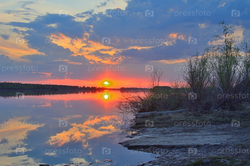 Закат над рекой Иртыш в Омской области