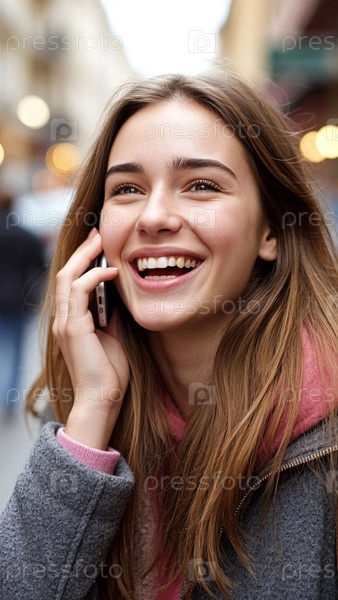 Девушка разговаривает по телефону и смеется. Красивая молодая женщина разговаривает по телефону. Девушка смеется разговаривая по телефону