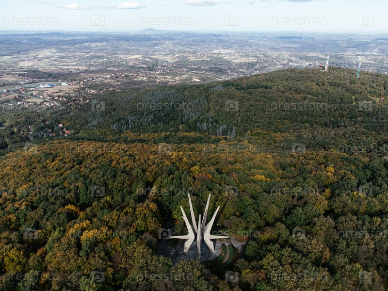 11 декабря 2024 года.Полет беспилотника над памятником павшим солдатам Космая, Сербия