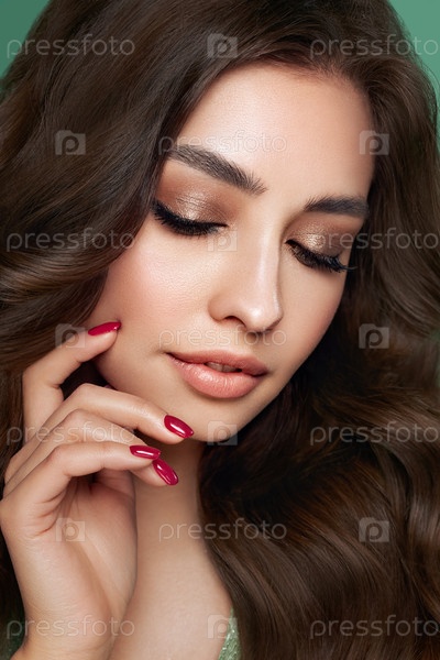 Улыбающаяся красивая женщина с длинными кудрявыми волосами