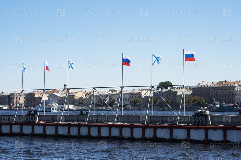 Санкт-Петербург, Россия, 24 июля 2024 года: российский и Андреевский флаги. День ВМС в Петербурге