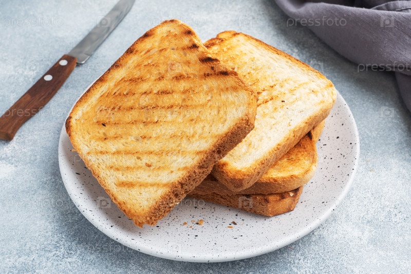 Хлебный тост хрустящий для бутербродов на тарелке на сером бетонном столе