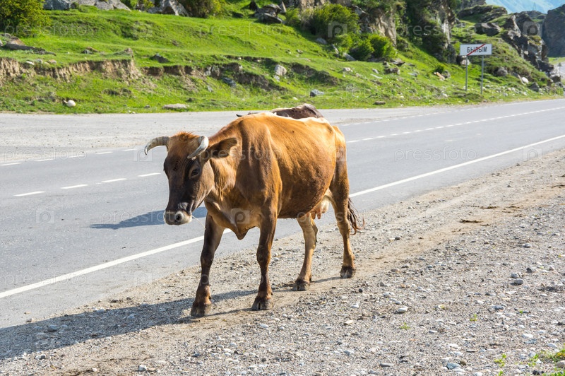 Корова в ущелье Баксан в Кавказских горах России